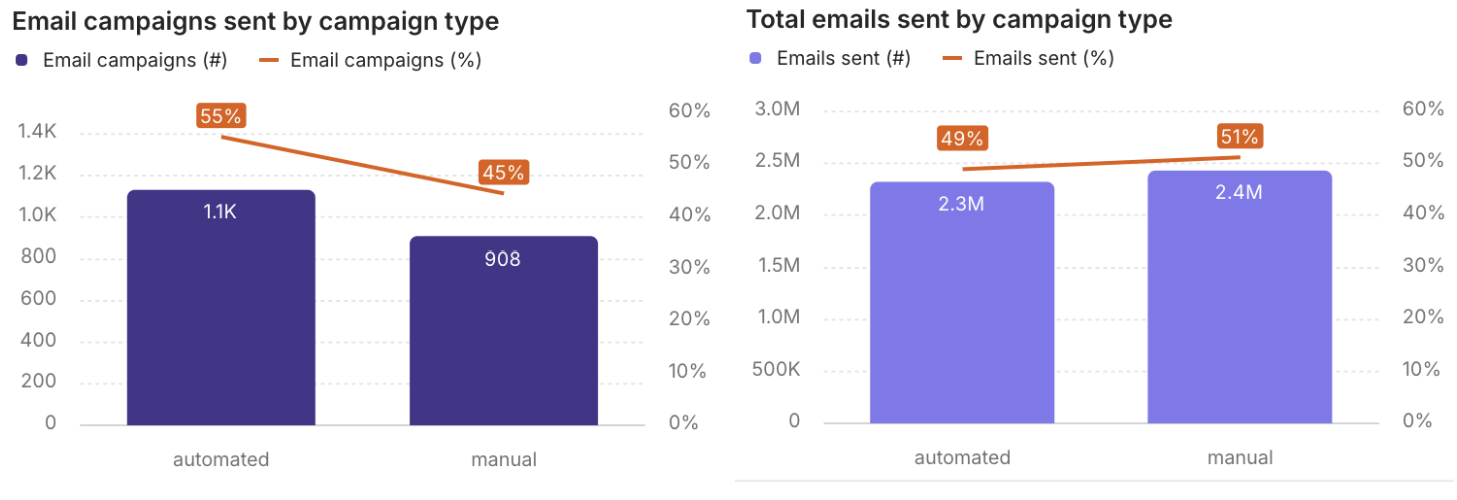 Taking into account the fact that delivery rate for automated emails are comparable to manual emails, and that open rates are even higher, the case for automation is clear: