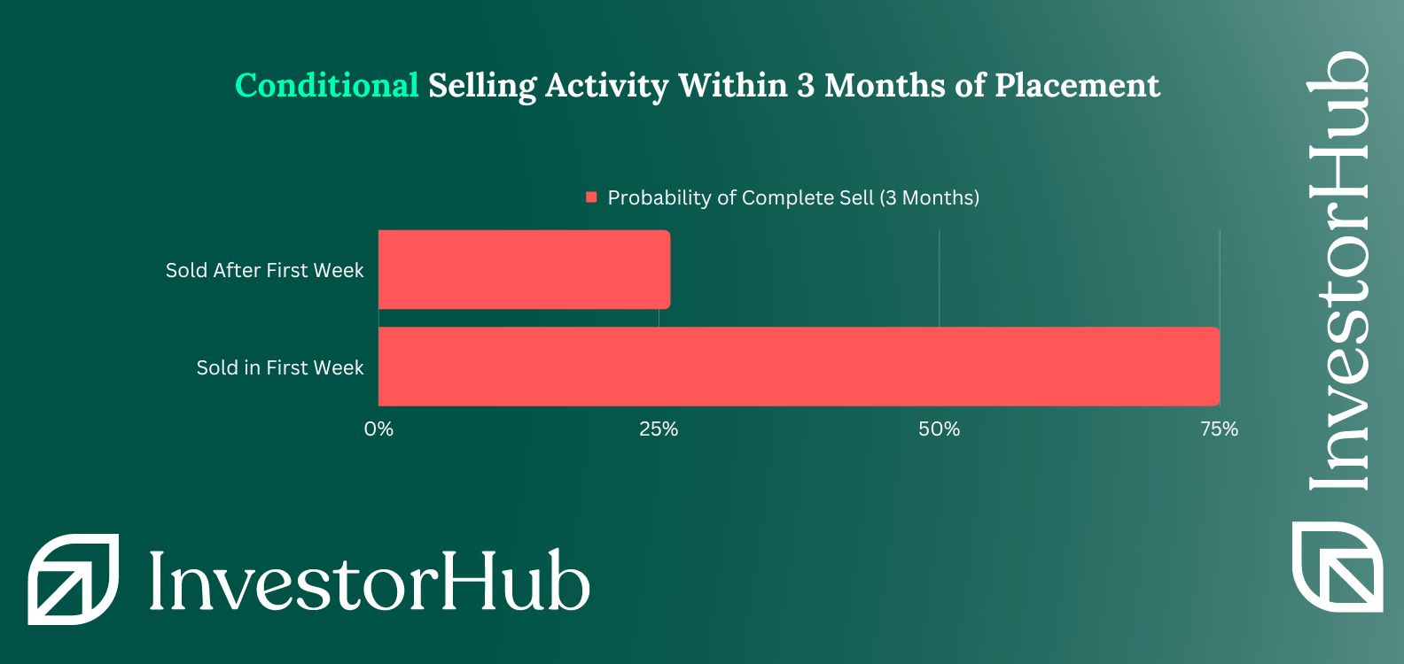 What we’ve found most recently is; that investors that sell within the first week of a placement are 3x more likely to sell out completely by the end of the first 3 months (75% vs 26%). That’s 3x as in '300% more likely to contribute to the selling down completely' category of shareholders, all based on the first sell timing.
