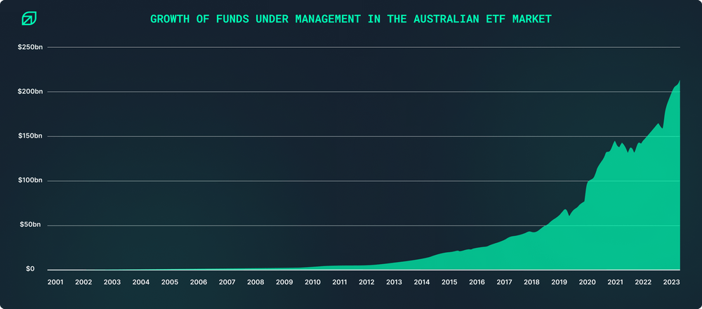 In the last financial year alone, Funds Under Management (FUM) in Australian ETFs surged by $56bn, an incredible 37.3% growth. Looking back to 2001, the growth has been nothing short of staggering, and it’s accelerating.