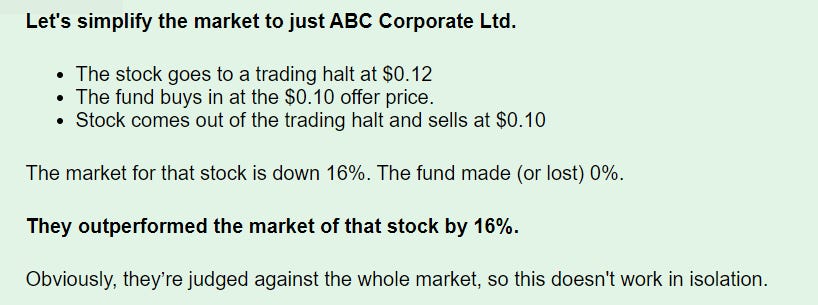 In that way, they constantly outperform, even if they sell for a loss. It’s factored into their alpha from the start; the deal gives them that.