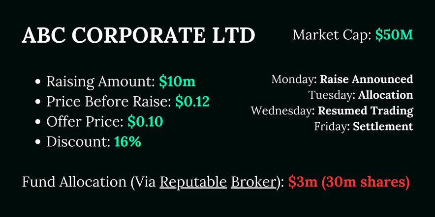 Wednesday - They’re armed with 30m shares that they sell into the market, pushing the share price from $0.12 down to or below the $0.10 placement offer price.
